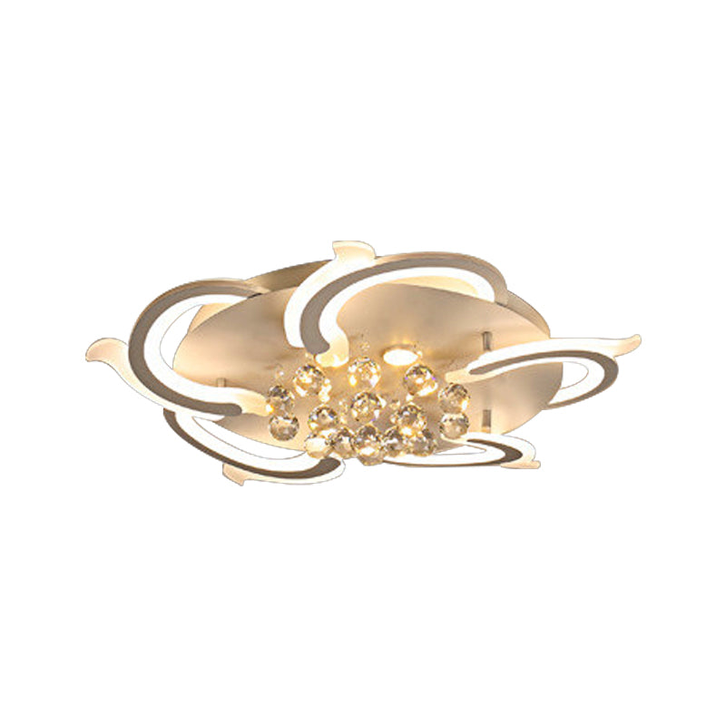 Modern Metallic Led Windmill Ceiling Lamp - White With Crystal Ball 3/5/6 Flush Lighting 6 / Warm