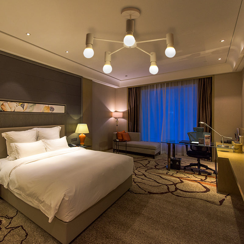 Halbbündige Deckenleuchte im Industriestil mit offener Glühbirne, erhältlich in Schwarz/Weiß – 3 oder 5 Köpfe