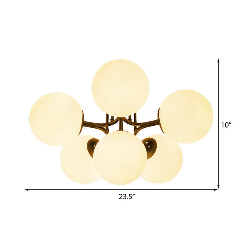 Traditionelle schwarze halbbündige Deckenleuchte mit kugelförmigem weißem Glasschirm – 3/6 Lichter für das Wohnzimmer