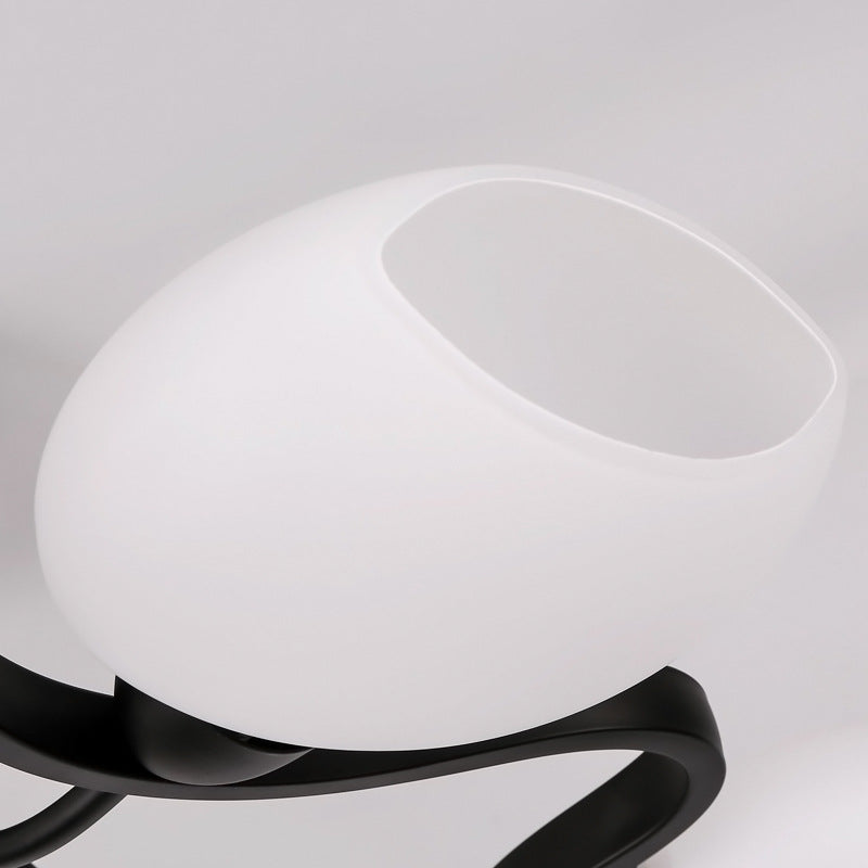Klassische schwarze, halbbündige Deckenleuchte mit weißen Glasschirmen in Blasenoptik – 6/8/10 Lichter für das Wohnzimmer
