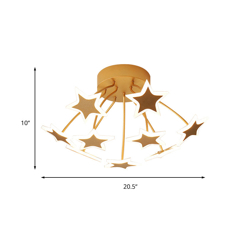 Gold Acrylic Starry Led Semi-Flush Mount Ceiling Light For Amusement Park Romance 9 / White