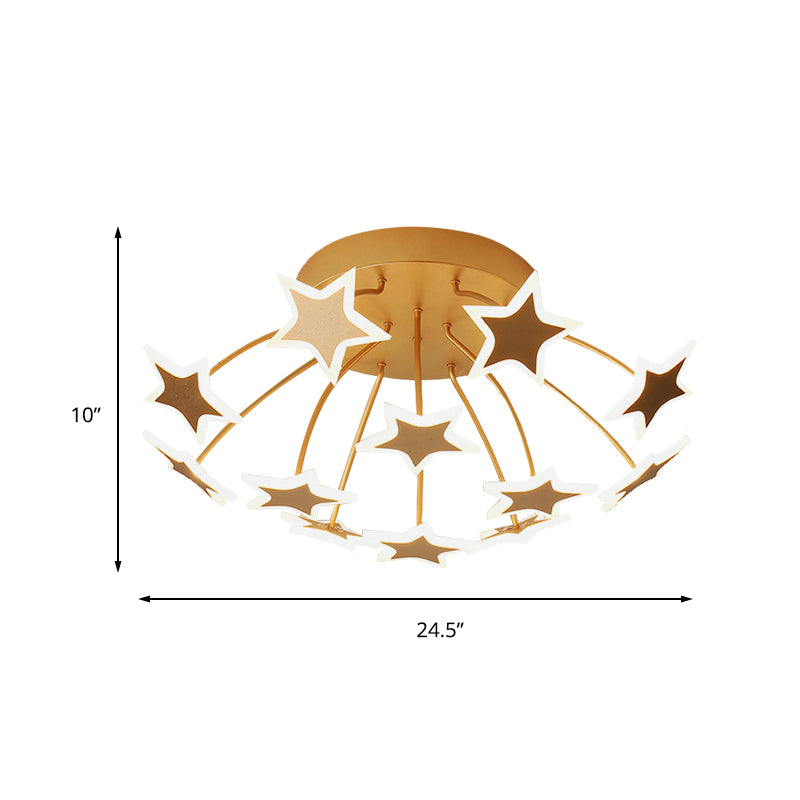 Gold Acrylic Starry Led Semi-Flush Mount Ceiling Light For Amusement Park Romance 12 / Warm