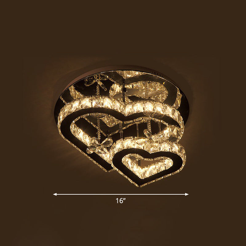 Modern Led Crystal Loving Heart Ceiling Light - Beveled Clear Semi - Flush Mount / 16’