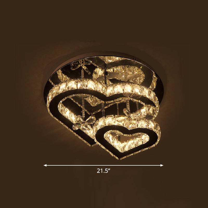 Modern Led Crystal Loving Heart Ceiling Light - Beveled Clear Semi - Flush Mount / 21.5’
