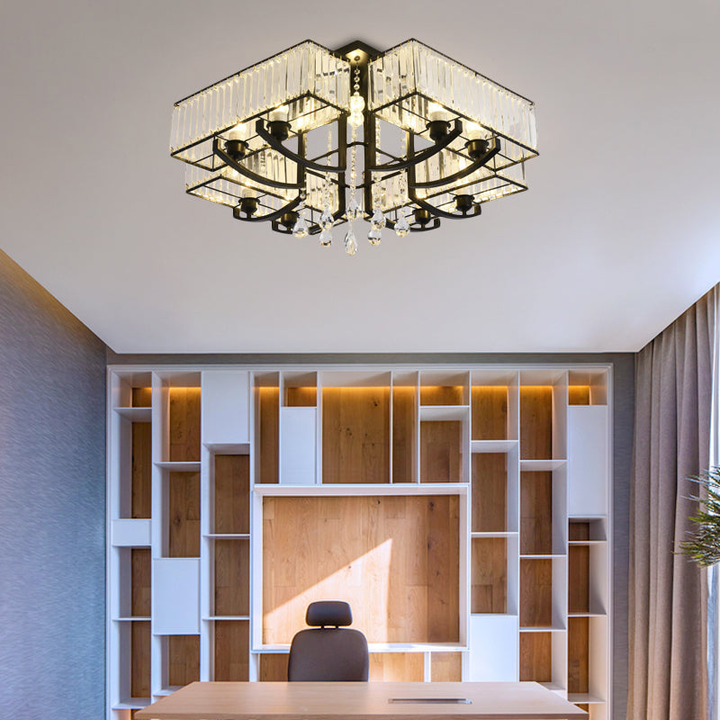 Contemporary Black Semi Flush Mount Lamp With Crystal Rods - 4/8 Light Options