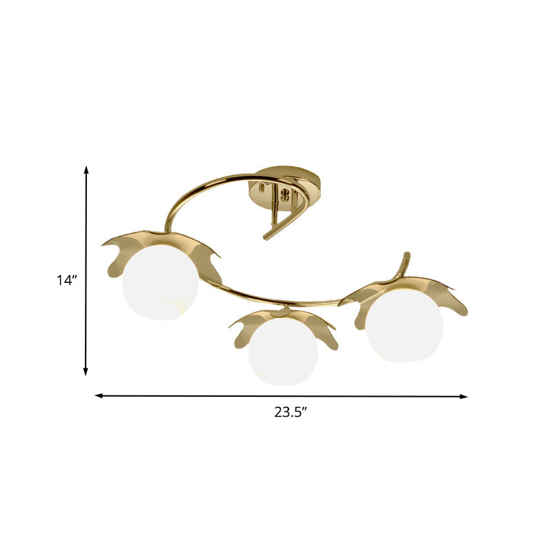 Modern Chrome Ball Semi Flush Light Fixture - 3 Lights Frosted White Glass Lamp