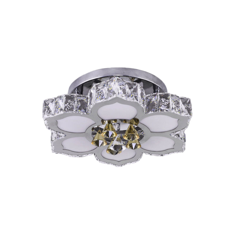 Minimalist Chrome Led Lotus Crystal Ceiling Flush Mount Light