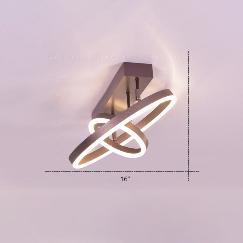 Coffee Metal Led Semi Flush Mount Ceiling Lamp – Simplicity In Bedroom Lighting 2 / Small