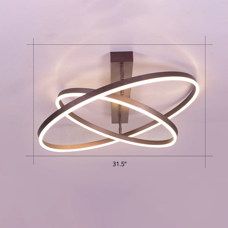 Coffee Metal Led Semi Flush Mount Ceiling Lamp Simplicity In Bedroom Lighting 2 / Large