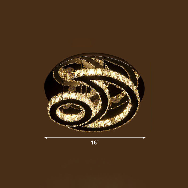 Clear K9 Crystal Moon And Sun Ceiling Lamp - Minimalist Stainless Steel Led Flush Light / 16