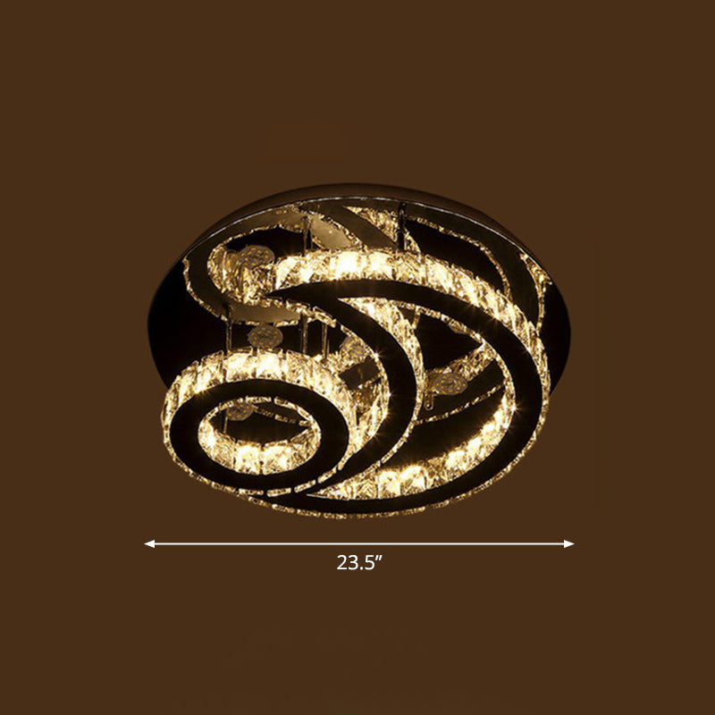 Clear K9 Crystal Moon And Sun Ceiling Lamp - Minimalist Stainless Steel Led Flush Light / 23.5’