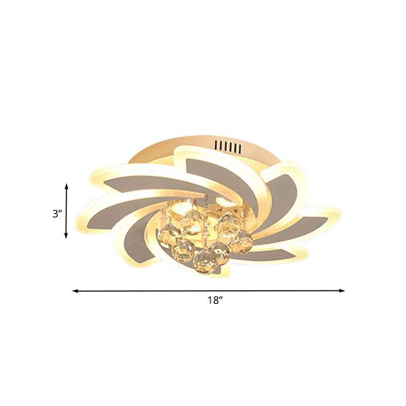 Modern White Crystal Ball Semi Flushmount Ceiling Light With Windmill Design