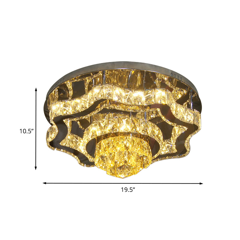 Modern Led Crystal Polished Chrome Semi Flush Ceiling Light With Tiered Scallops And Rectangle/Round