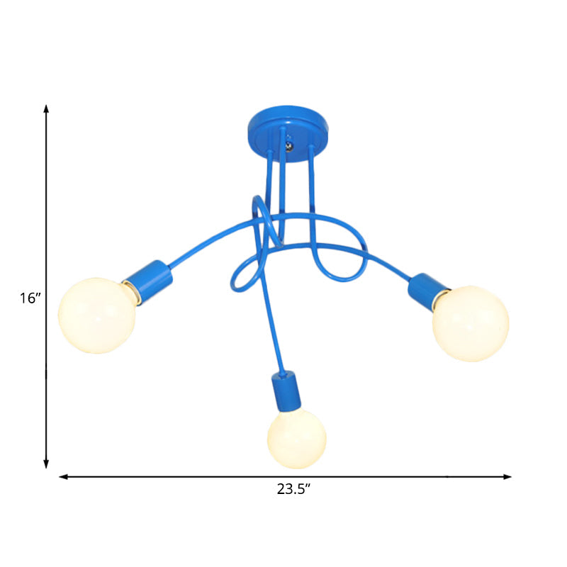 Contemporary Curved Arm Metal Semi Flush Ceiling Lamp - Blue/Red (3/5 Lights) 3 / Blue