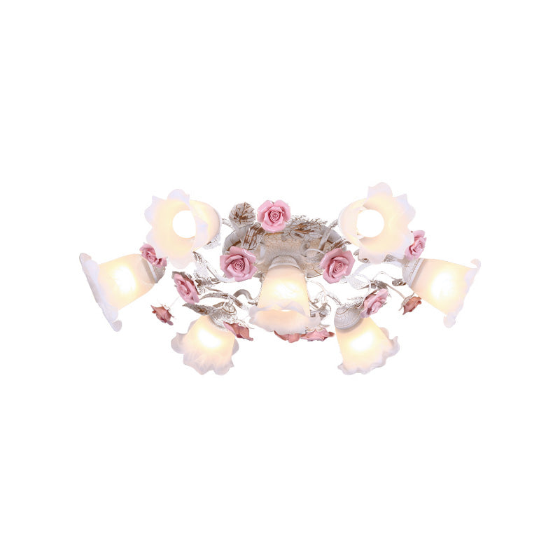 Pastoral White Glass Ceiling Light With Sputnik Design - 4/6/7 - Bulb Semi Mount For Bedroom 7 /