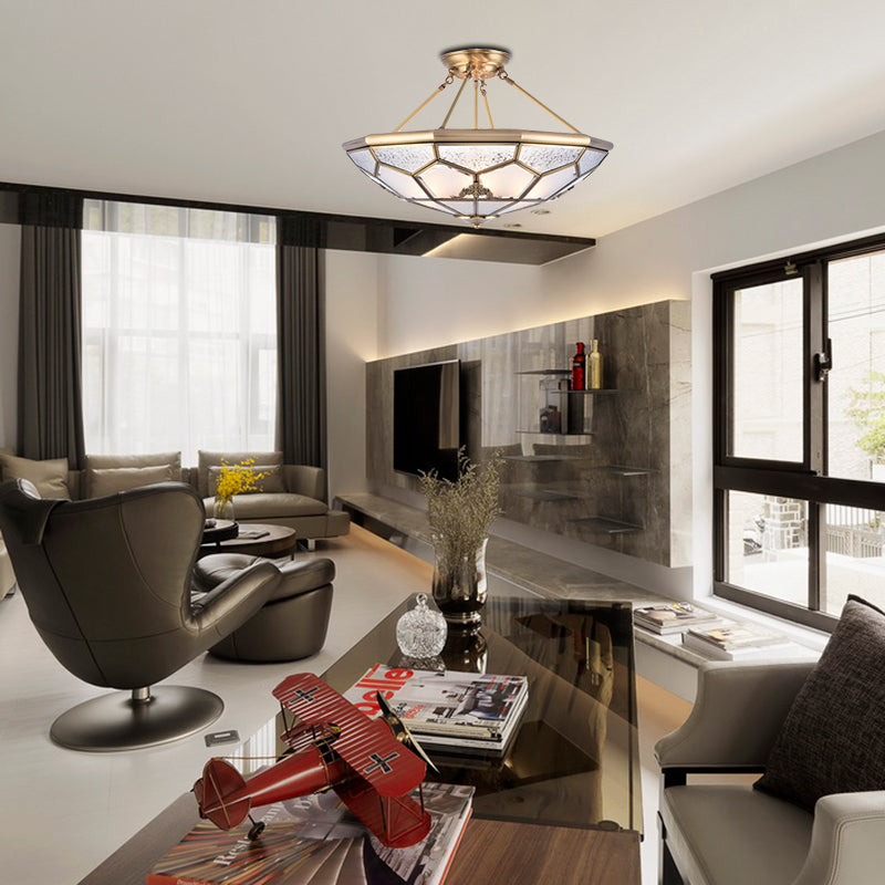 Traditional Frosted Glass Semi Flush Mount For Corridor - Gold Wide 14/16/18 3/4/6 Lights