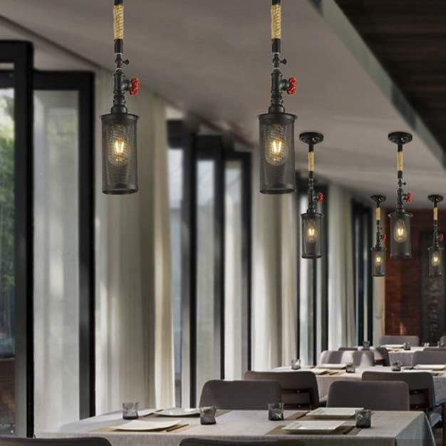 Sleek Black Metal Rotatable Ceiling Light With Cylinder Shade - Industrial Mesh Screen Design / A
