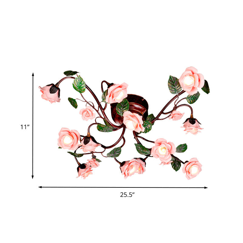 American Garden Metal Semi Flush Mount With 12 Led Lights In Dark Brown For Rose Bedroom Ceiling