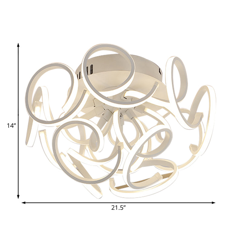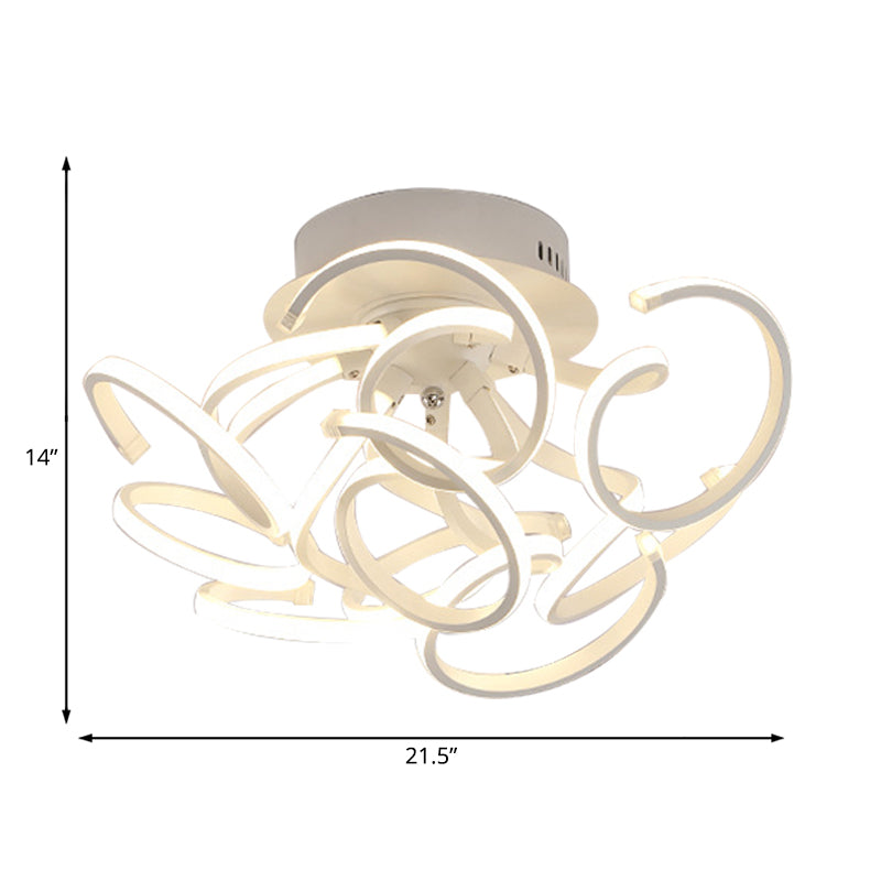 Contemporary Swirl Wave Semi-Flush Led Ceiling Light With 9/12 Lights In White Or Warm