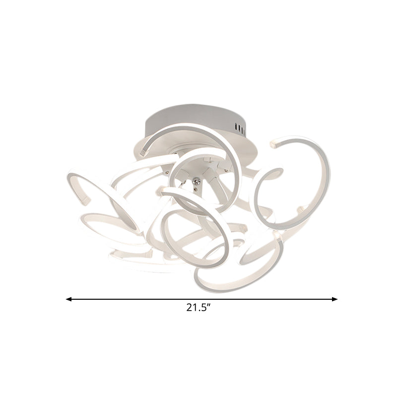 Modern Metal Semi Flush Ceiling Light - Twisted Strip Design 9/12-Light White Led Warm/White/Natural