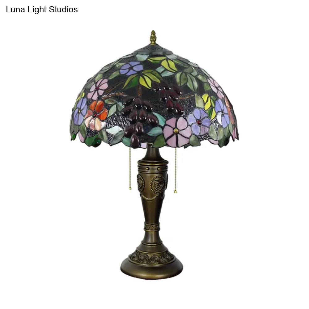 Aubrey – Tiffany-Tischlampe mit 2 Lampenköpfen und Zugkette, Tiffany-Nachttischlampe aus braunem/weiß-braunem Glas mit Traubenmuster