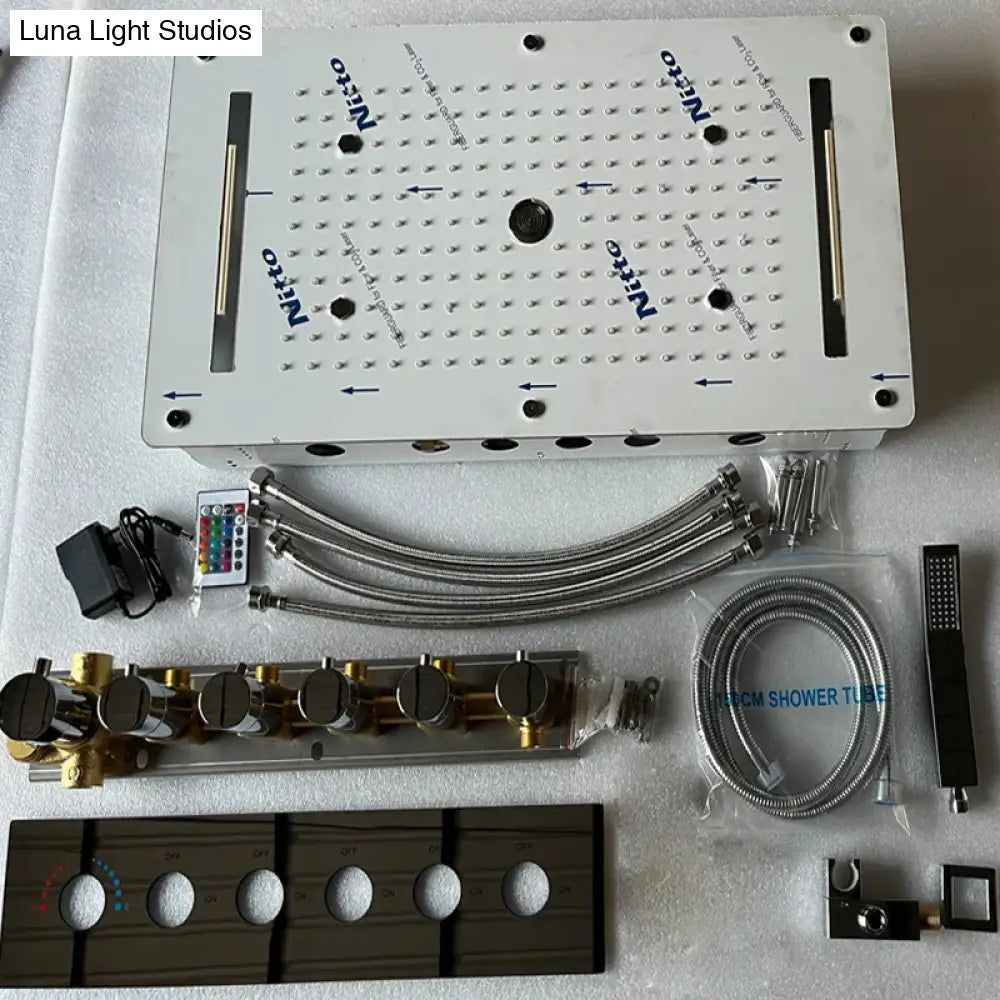 This smart shower system features remote control and app control, allowing you to adjust settings effortlessly. The 12V LED lighting enhances ambience and adds a high-end touch to your shower space.