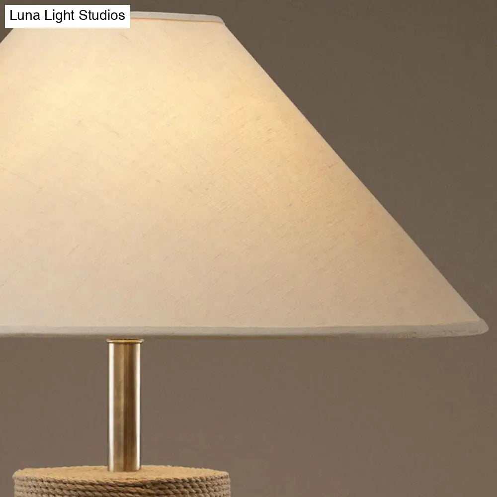 Tischlampe im Empire-Stil mit Stoffschirm: 1-flammiges Nachtlicht mit Seilsockel in Flachs