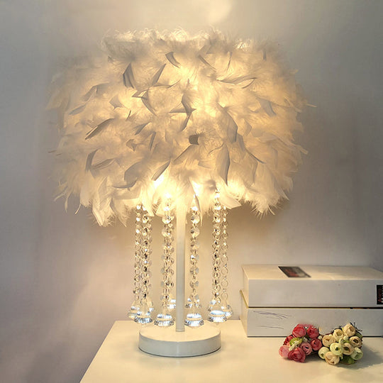 Modernist Feather Nightstand Light With Draping Crystal - Red/Pink/Purple White