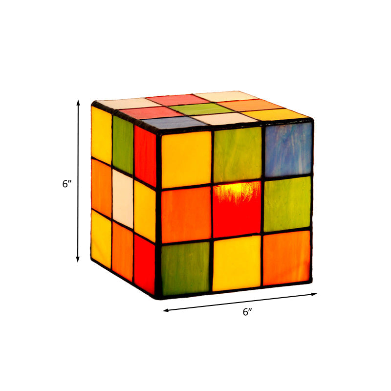 Die Größe beträgt maximal 9 Zoll, die Länge 6 Zoll, die Leuchtenbreite 6 Zoll und die Leuchtenhöhe maximal 15 Zoll. Der Schirm besteht aus buntem Glas im Tiffany-Stil. Das Material ist Glas, die Schirmform ist quadratisch. Die Farbe ist Rot-Gelb-Blau-Grün. Die Spannung beträgt 220–240 V, die Fassung ist E12/E14. Die Leuchtmittel sind LED/Glühlampe/Leuchtstofflampe.