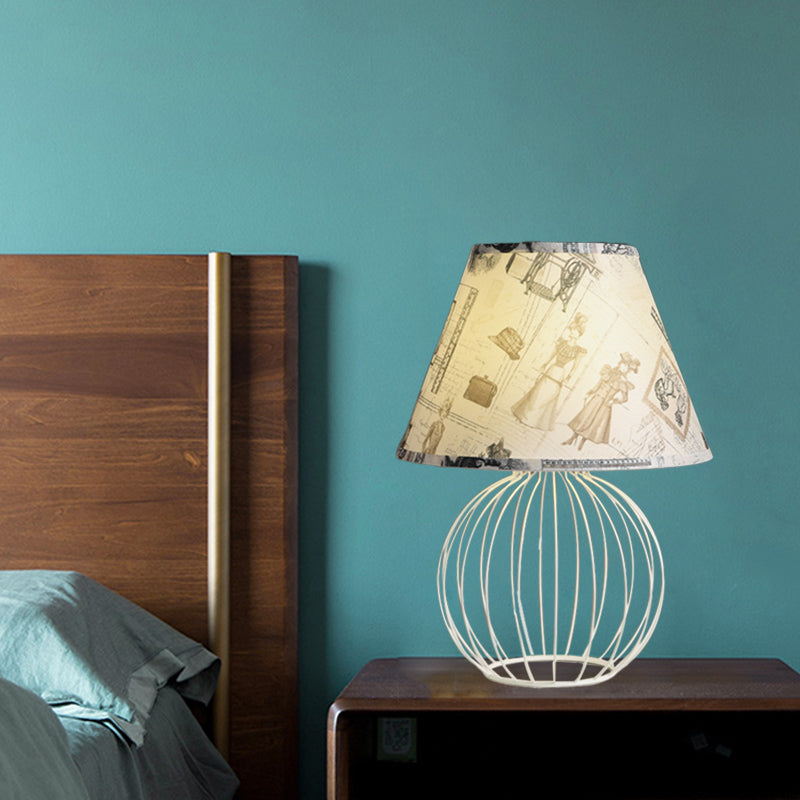 White 1-Light Desk Lamp With Traditional Fabric Shade And Wire Cage Base / A