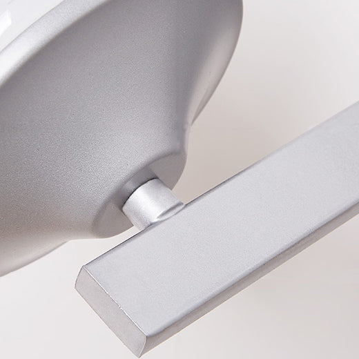 Der Lampensockel ist mit E26/E27-Glühbirnen kompatibel und muss fest in der Wand installiert werden. Die Rückwandbreite beträgt 12,7 cm, die Leuchtenbreite 21,6 cm und die Leuchtenhöhe maximal 23,9 cm. Der Schirm dieser Wandleuchte besteht aus Glas und wird über eine direkt verdrahtete Stromquelle mit Strom versorgt. Die Leuchte ist mit LED-Licht ausgestattet und in auffälligem Schwarz und Silber gehalten.