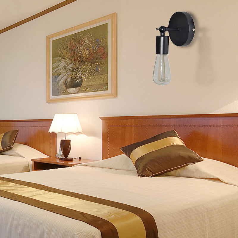 Industrial Black Metal Angled Sconce With Exposed Bulb - Perfect For Living Rooms