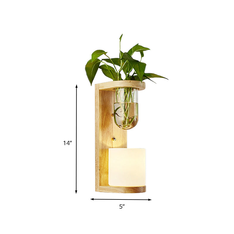 Opal Glass Up/Down Light Simple Led Wall Mount Lighting In Wood For Living Room