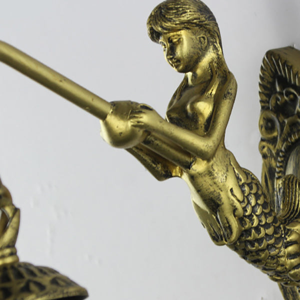 Dies ist eine Wandleuchte mit zwei Leuchtenköpfen und einem Schirm im Tiffany-Stil. Der Schirm besteht aus weißem oder beigem Buntglas in ausgestelltem Design. Die Rückplatte hat die Form einer Meerjungfrau. Das Leuchtmittel ist nicht im Lieferumfang enthalten. Diese Leuchte ist für den Einsatz mit LED-, Glüh- oder Leuchtstofflampen geeignet und hat einen mittleren Sockel. Sie ist direkt an die Stromversorgung angeschlossen und in den Ausführungen 110–120 V oder 220–240 V erhältlich.