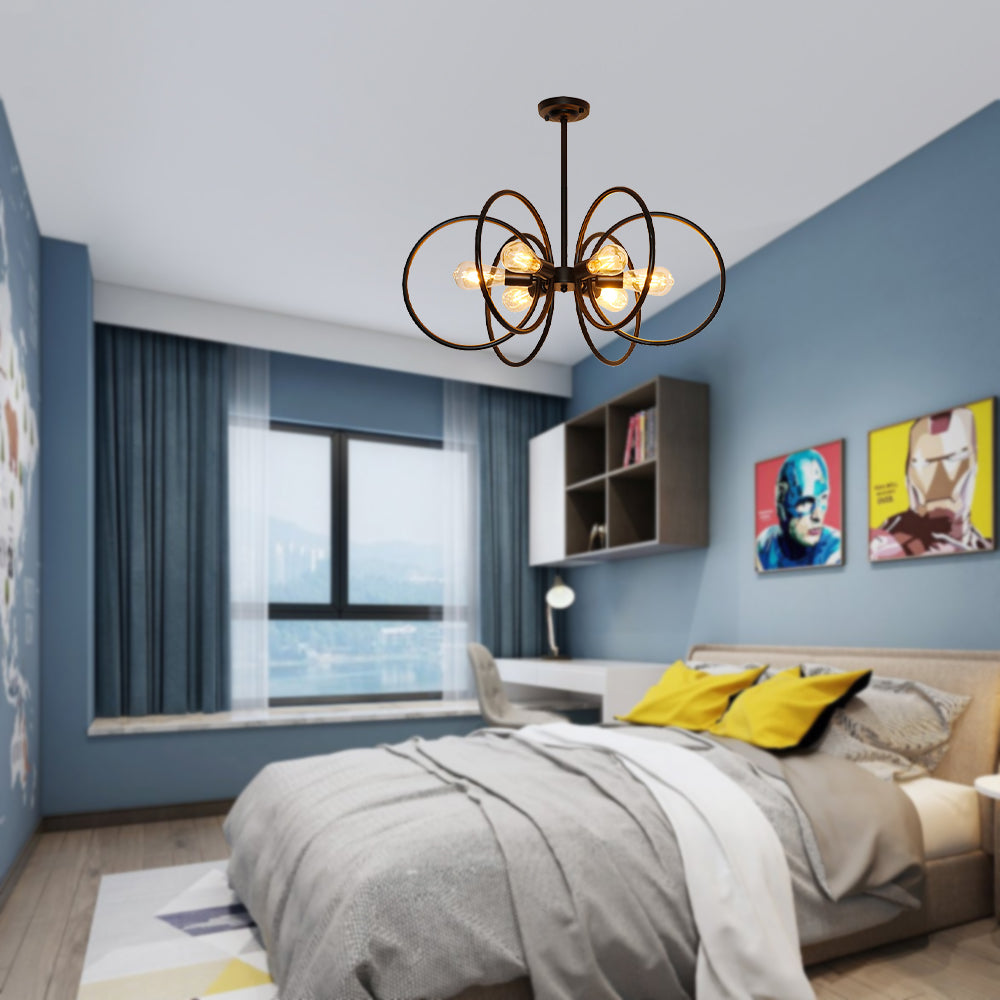 Vintage-Style 6-Light Metal Chandelier Ceiling Fixture For Restaurants - Black
