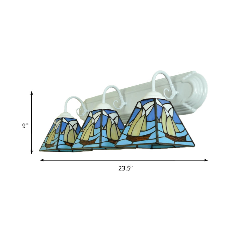Nautische Wandleuchte aus Buntglas mit Segelboot-Motiv: Wandhalterung in Weiß mit 3 Köpfen