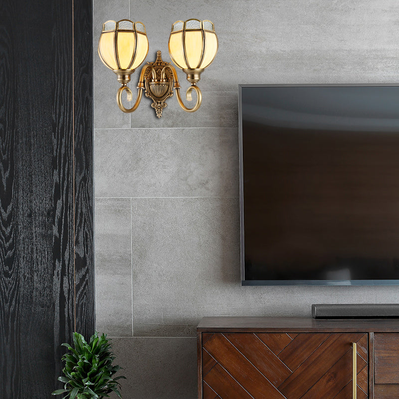 Traditionelle 1/2-Kopf-Blumen-Wandleuchte aus Messingmetall für Schlafzimmer