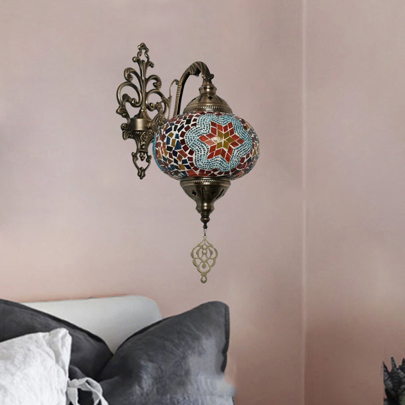 Stained Glass Wall Light With Moroccan Sphere Design - Vibrant Yellow/Orange/Green Perfect For