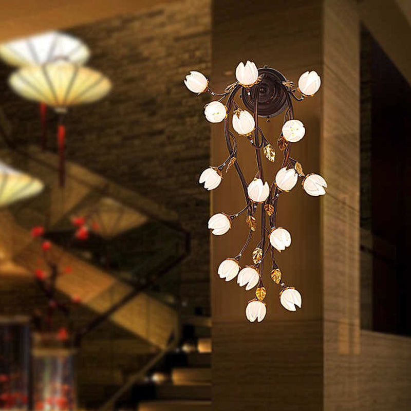 Lotusrosa LED-Wandleuchte aus schwarzem Glas – elegante 16-flammige Leuchte für ländliche Wohnzimmer