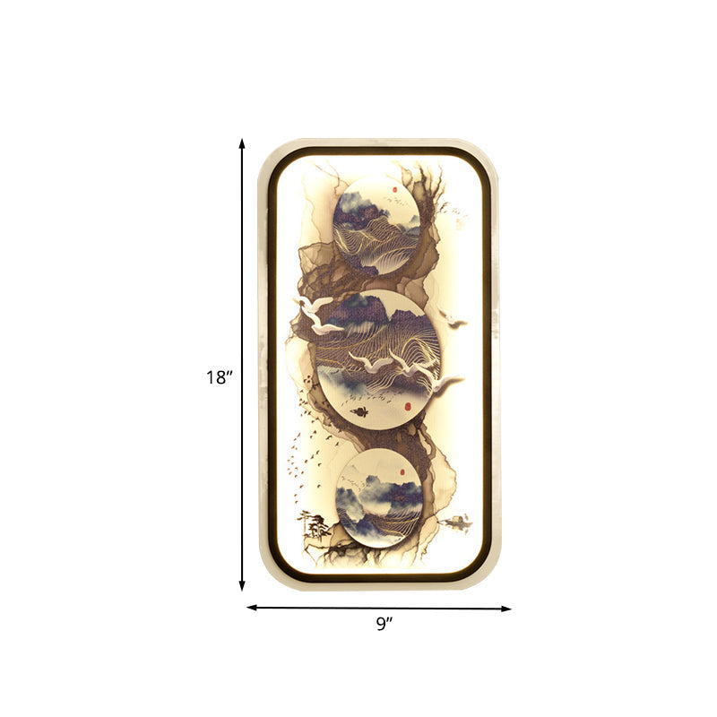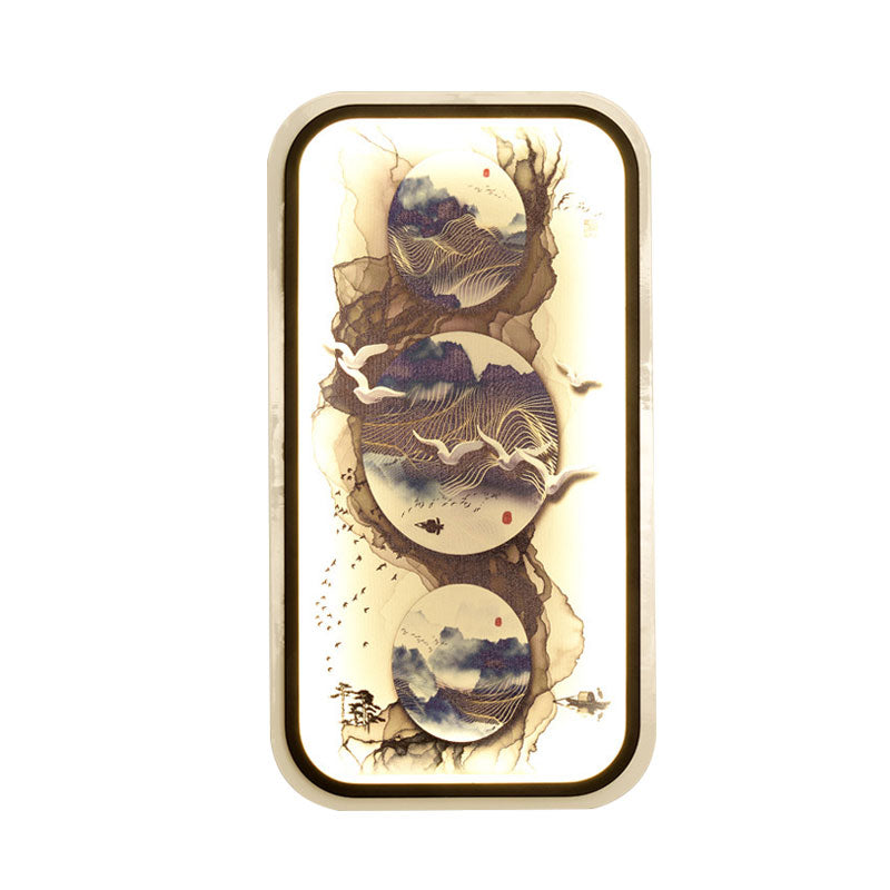 Zeitgenössisches asiatisches LED-Wandlampen-Set: Wandleuchte mit abstraktem Gemälde in Schwarz