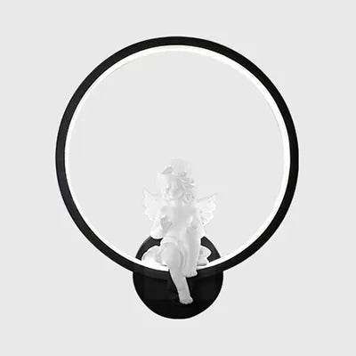 Art Ring Sconce Light: Little Angel Metal Resin Wall Lamp For Bedroom Bathroom Mirror Black / Left
