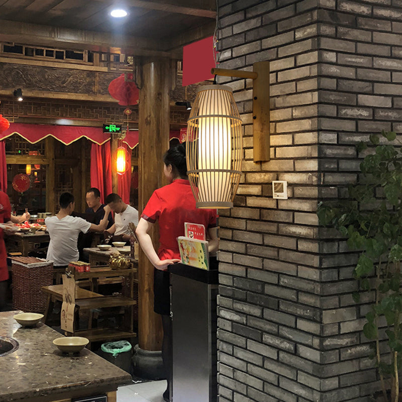 Nordic Style Bamboo Handmade Wall Lamp - Wood Light For Corridor 1 Bulb Fixture / C