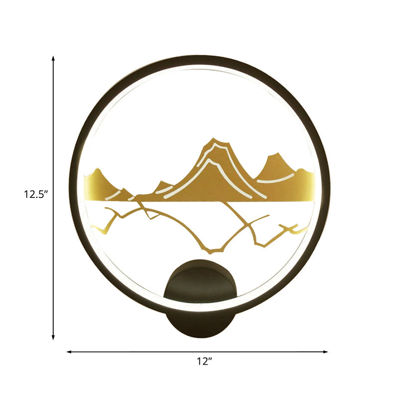 LED-Wandleuchte im asiatischen Stil mit Bergmuster – schwarze runde Halterung