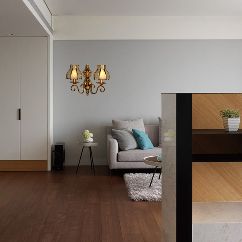 Traditional Curved Brass Wall Sconce With 1/2-Light For Living Room