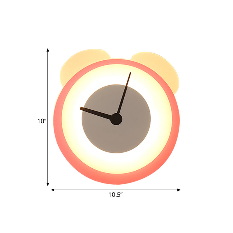 Pink Bear Wall Lamp Clock For Girls Room And Living Area / White
