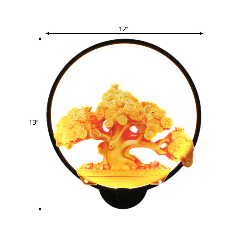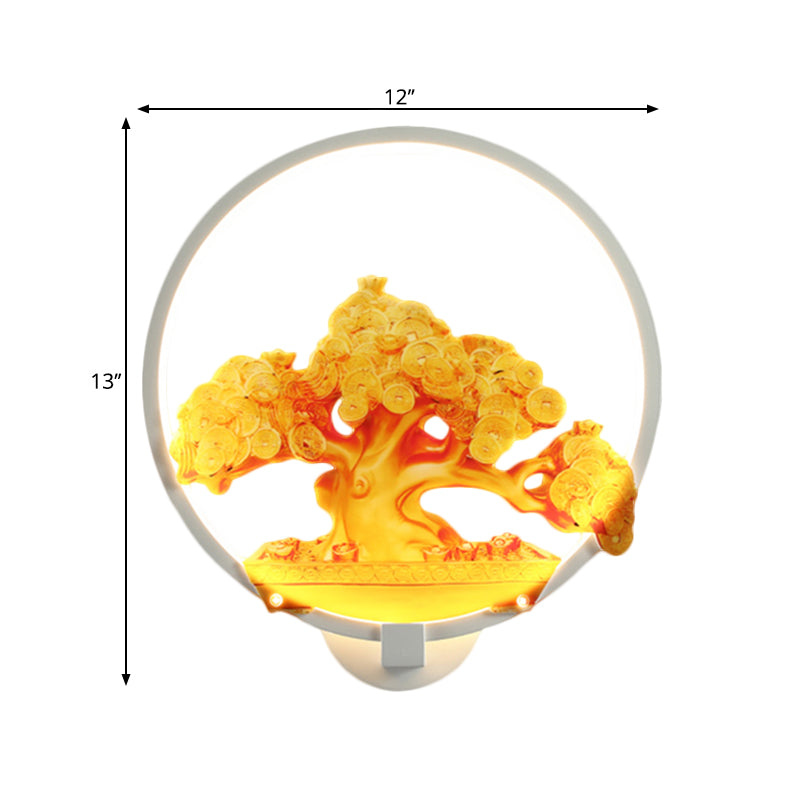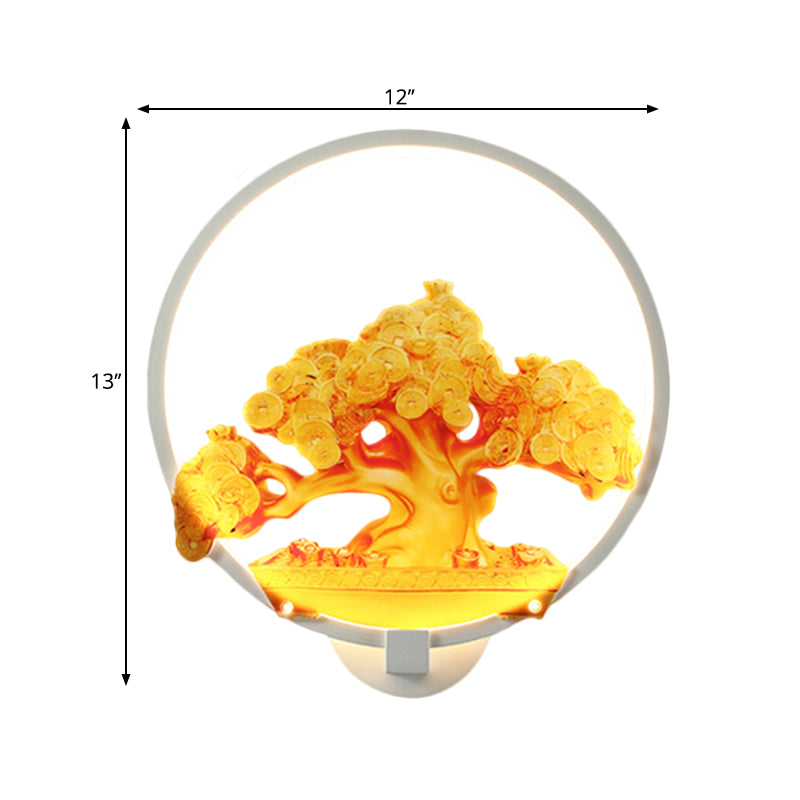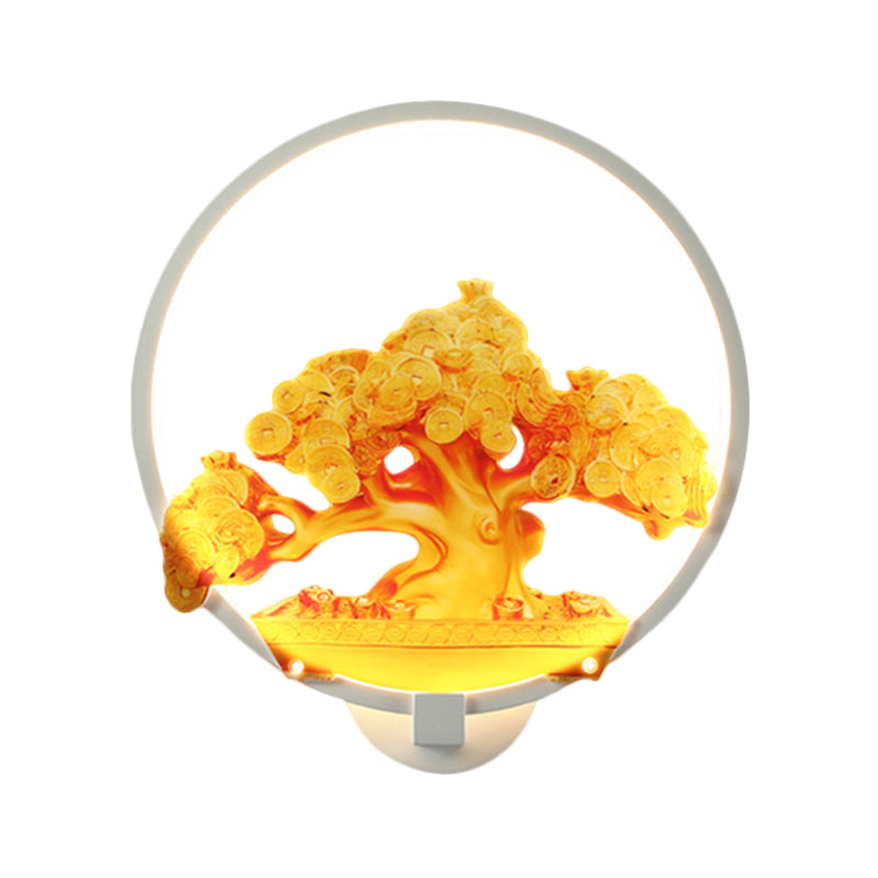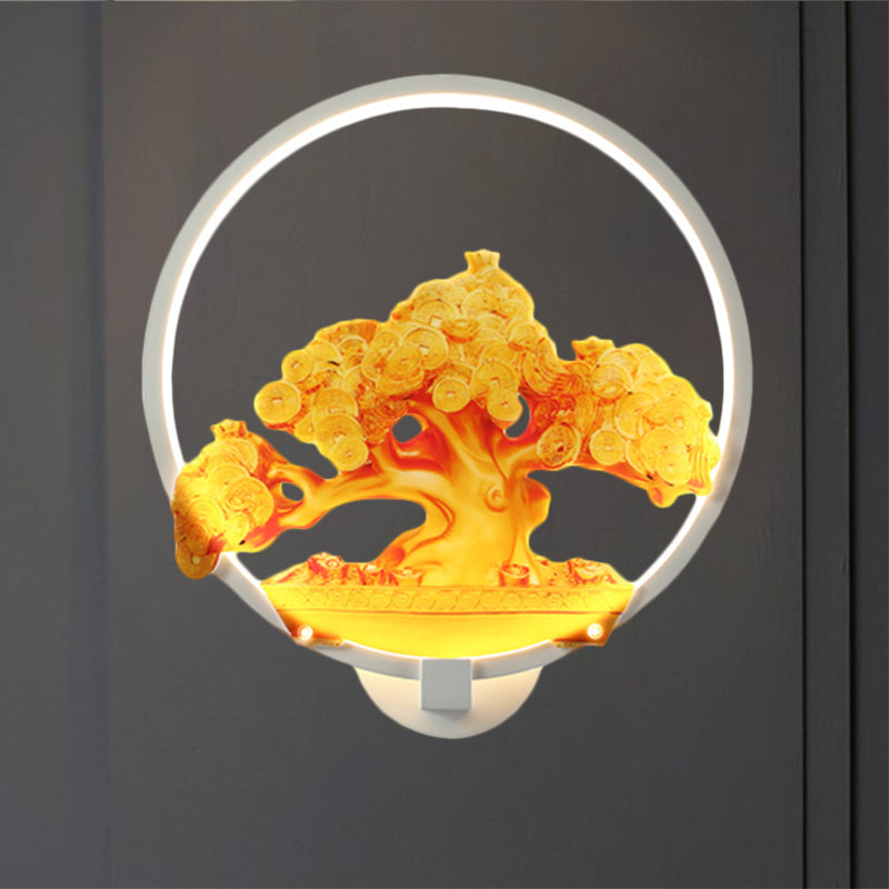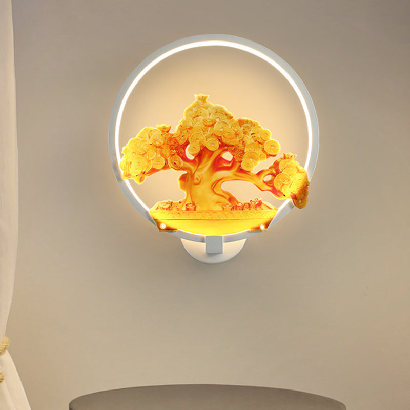 Autumn Tree Patterned Metal Led Wall Light For Hallways - White/Black (Right/Left)