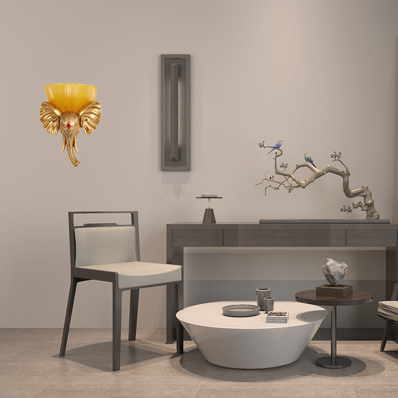 Colonial Bowl Wall Mount Lamp - Amber Glass With Elephant Nose Design Left/Right Gold / Left