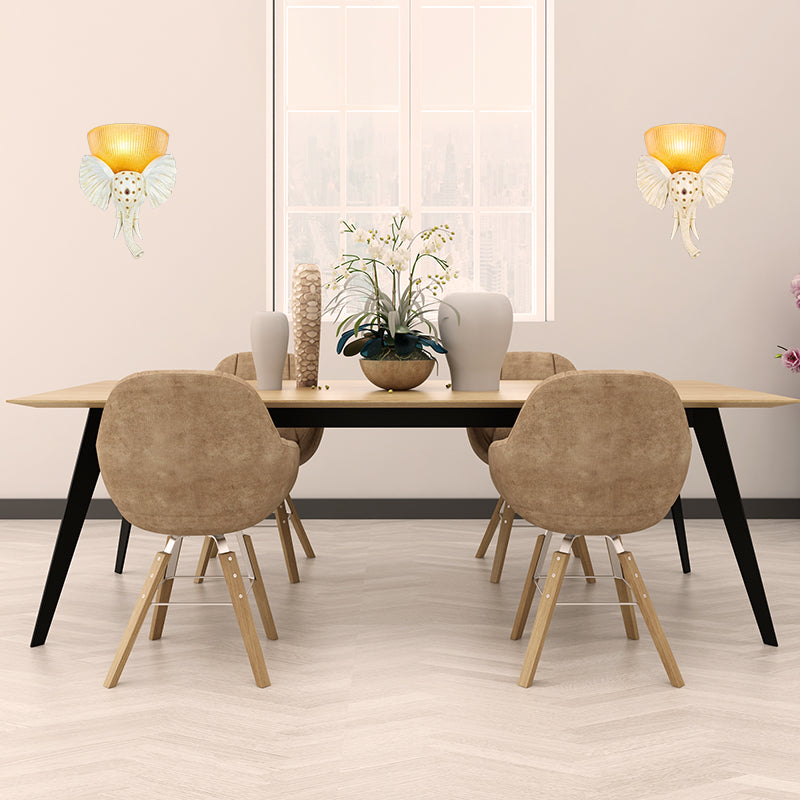 Colonial Bowl Wandleuchte - Bernsteinfarbenes Glas mit Elefantennasen-Design - Links/Rechts