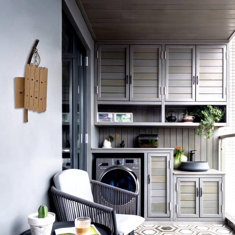 Modern Cylinder Shaped Bamboo Wood Wall Light Fixture With Pierced Design - Balcony Sconce Lighting