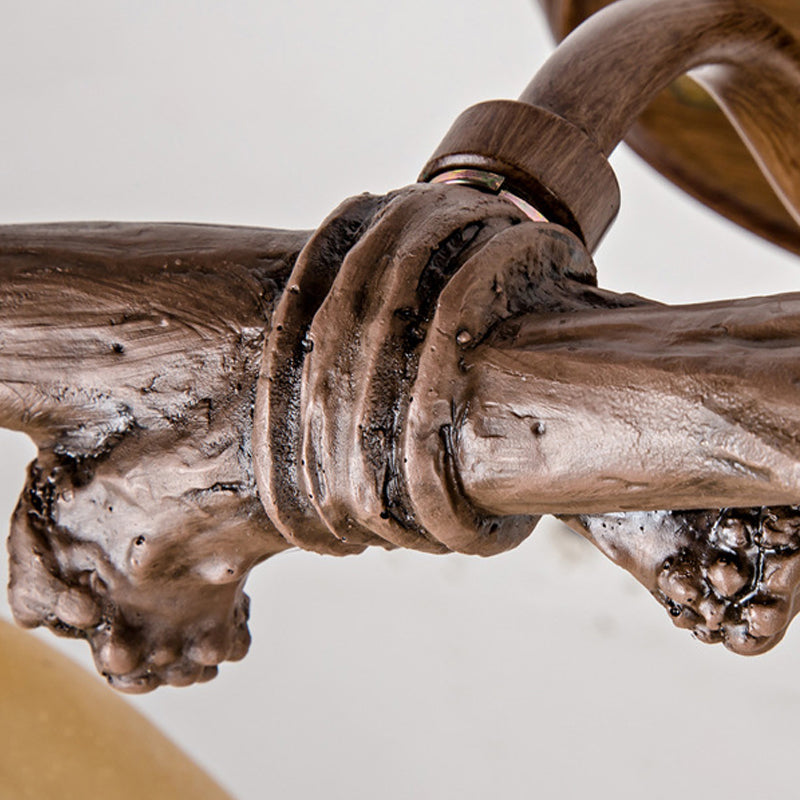 Wir präsentieren die kegelförmige Wandleuchte aus dunklem Holz mit rustikalem Harz und Glas und zweiflammiger Korridorleuchte mit Geweihdekor. Diese Wandleuchte im traditionellen Stil ist 45 cm breit und 31,8 cm hoch. Mit ihrem dunklen Holzfinish und den Harzdetails im Antik-Stil verleiht diese Leuchte Ihrem Raum einen Hauch von rustikalem Charme. Die beiden Leuchten leuchten den Flur entlang und sorgen für eine stimmungsvolle Atmosphäre in Ihrem Zuhause.